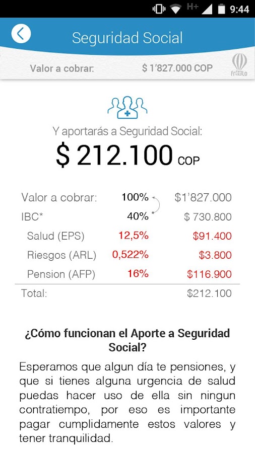 Para los usuarios registrados te darán en detalle el costo y la división del pago, diciéndote cuanto deberás pagar por impuestos, seguridad social, cuanto dinero te sobrara y como deberías dividirlo e invertirlo.
